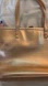 Gorgeous Disney Parks rose gold metallic tote bag with perforated detailing and subtle Mickey Mouse icons on the rose gold hardware. Comes with a matching metallic quote pouch embossed with: “and off she went to change the world.”