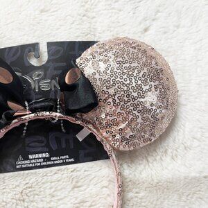 Disney Rose Gold Sequins Black Satin Polka Dot Bow Minnie Mouse Ears NWT
