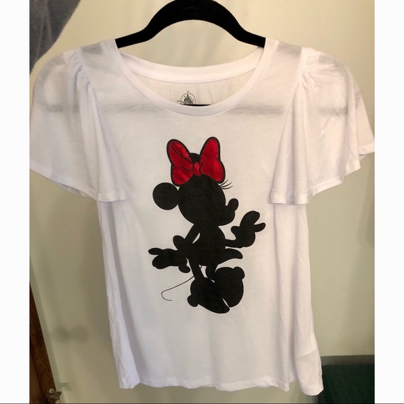 Disney ruffle sleeve top. 65% Polyester 35% Rayon. Would also fit like Kids (Girls) XL.