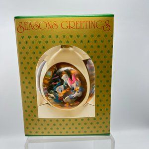 Disney SEASONS GREETINGS Glass Ball Ornament Mickey Minnie Donald Daisy 2000 NEW