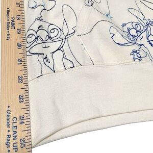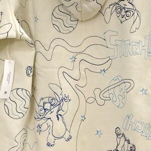 Disney STITCH Jacket Women XL Cream/blue Embroidered Full Zip Hoodie Pockets NWT