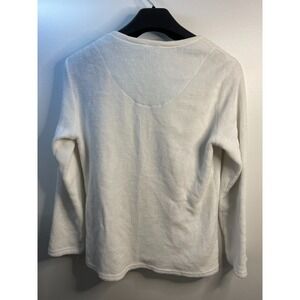 The Disney Olaf Pajama Top in Arctic White is a cozy and playful addition to any winter-themed sleepwear collection. This long-sleeve top features a V-neckline and a charming graphic print of Olaf/Snowman, perfect for fans of the Frozen character. Made from a soft fleece fabric blend of polyester and spandex, this machine washable top is lightweight and comfortable for a restful night's sleep. Perfect for women size L (12-14), this pajama top is a lovely choice for those looking for a fun and warm sleepwear option.