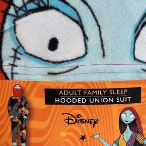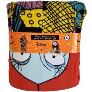 This is women's size small. It is a one piece hooded union suit / pajama sleeper. It is the character Sally from The Nightmare Before Christmas. It zips up the front. This item is brand new.
