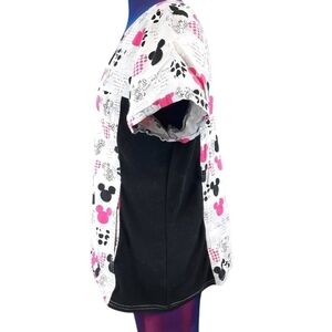 Disney Scrub Top Short Sleeve Mickey Mouse Gray Pink Black Size Medium Women's
