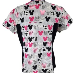 In excellent condition Disney Scrub Top Short Sleeve Mickey Mouse Gray Pink Black Sz M Women's.