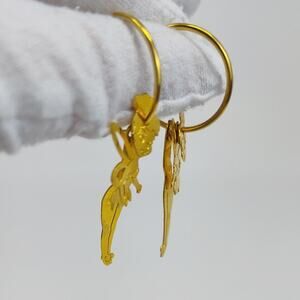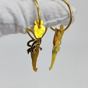 Disney Signed Gold Tone Tinkerbell Dangle Earrings