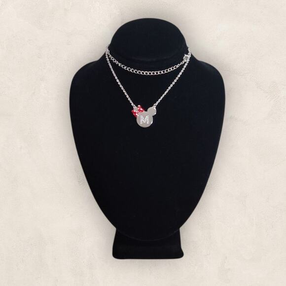 Add a touch of magic to your outfit with this adorable silver-tone necklace! This necklace features the letter "M" pendant, adorned with a charming Minnie Mouse bow. It's the perfect accessory for a Disney fan.