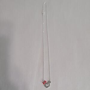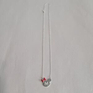 Disney Silver-Tone Clear Rhinestone Letter M Necklace Minnie Mouse Bow Pendent