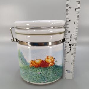 Disney Simply Pooh 6" Latched Lid Ceramic Crock Storage Jar Canister