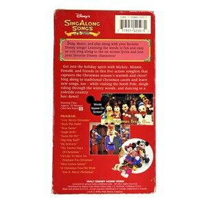 Disney Sing Along Songs: Twelve Days of Christmas (1993) VHS cassette in vintage condition, featuring classic holiday music and festive Disney characters. The tape plays the beloved sing-along program as originally released, and the clamshell case shows typical age-related wear but remains fully intact. A great nostalgic addition for Disney collectors or anyone looking to relive a classic Christmas favorite.