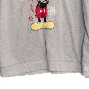 Disney Size XL Mickey Mouse Winter Graphic Fleece Sweatshirt Gray Red Trim