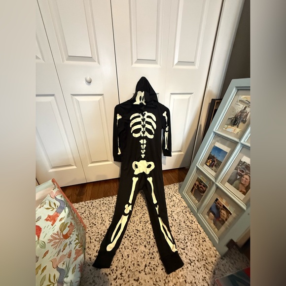 Charming Disney skeleton costume for kids. Bold black with white bone design. Ideal for Halloween fun. Glows in the dark and super cute! Comes from a smoke and pet free home! Brand new never worn!
