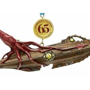 * Fully sculpted ornament of the submarine Nautilus and giant squid