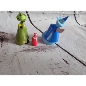 Disney Sleeping Beauty Godmother Fairies Green Blue And Red. Green and blue are larger than the red one that is tiny. In good condition