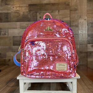 Disney Sleeping Beauty “Make It Pink! Make It Blue!” Loungefly Backpack Sequin.