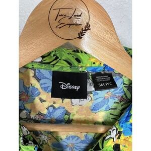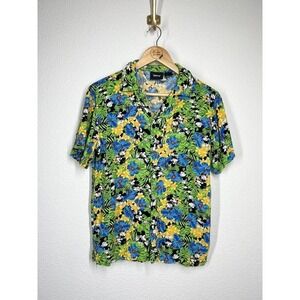 Disney Small S Mickey Mouse Hawaiian Floral Button Front Shirt Short Sleeve