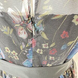 Consider this Disney elegant black dress featuring a floral pattern with red & blueish flowers. Has a satin belt. Fits beautifully on.