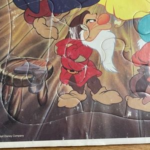 Disney Snow White & Seven Dwarfs Frame Tray Puzzle Piece Dancing Scene Golden 25