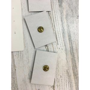 Creasing to cardboard backs. Bending to large paper, holes from pins being inserted and removed. Pins excellent used condition, some discoloration to pin backs from age.