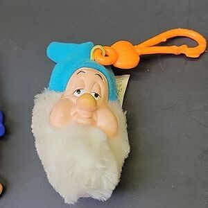 Includes Mattel "Happy" dwarf plushy, Disney's "Dopey" & "Sneezy" stackable dolls- New in Box,( box shows wear) with a miniture of these also, and key fobs featuring, McDonalds Happy Meal toys: "Snow White, Sneezy, & Sleepy" . Also included is a mug featuring the dwarf - "Grumpy". and a vintage McDonalds Happy Meal bag. A great collection of collectibles for that McDonalds toys fan, or Snow White fan.