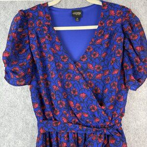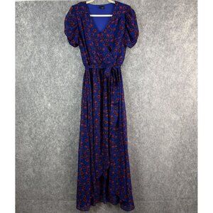 Disney Snow White and the Seven Dwarves Maxi Wrap Dress M Royal Blue Red Floral