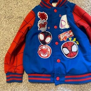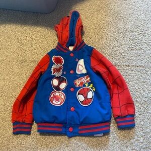 Disney Spidey and His Friends Hooded Jacket Sz 4 Hooded Snap Button Blue Red