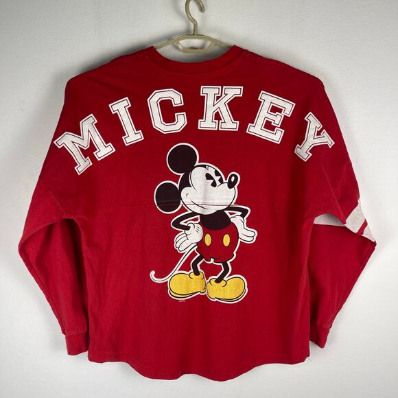Disney Spirit Jersey Adult Large Red Mickey Mouse Graphic Long Sleeve Spell Out