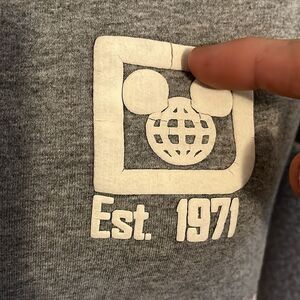 Disney Spirit Jersey Walt Disney World Gray Sherpa Fleece Sweatshirt, size XS, pullover style. Please note; has signs of wear, piling and cracking.
