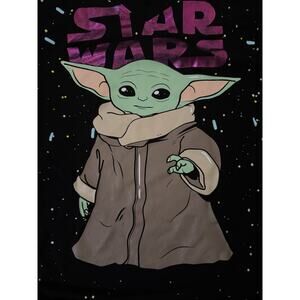 This Disney Star Wars Lucas film Baby Yoda Mandalorian V-neck tee is a must-have for any pop culture or Star Wars fan. Made from comfortable cotton knit fabric, this pullover shirt features a colorful galaxy print accenting the iconic Baby Yoda character. With a stretchy design and short sleeves, it is perfect for casual wear in any season. Show off your love for the Star Wars universe with this trendy and fun top from Disney.