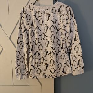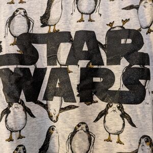 Cozy gray sweatshirt featuring Star Wars logo and playful penguin pattern. Technically a pajama shirt, but could be worn for day.