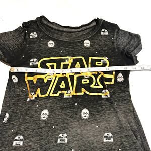 Disney Star Wars Spell-Out Gray and Gold T-Shirt Girls XL. Semi-Sheer. Short Sleeves. Crew Neck. Measurements in Pics. EUC.