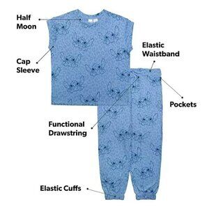 Disney Stich Women's Small Two-Piece Pants and SS Shirt Cozy Pajama Set
