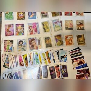 Explore the enchanting world of Disney with this vibrant set of pink and purple trading cards. Each card features beloved characters and magical scenes, perfect for collectors and fans alike. Dive into the magic and start your collection today.