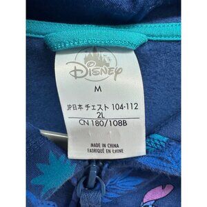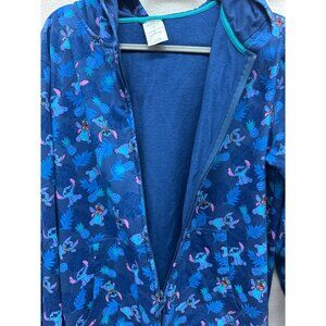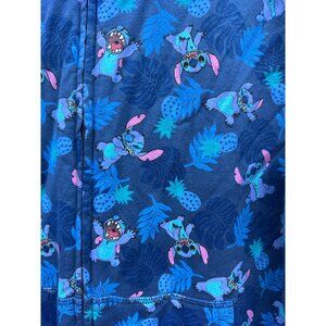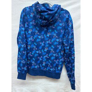 Disney Stitch Blue Zip-Up Hoodie Sz M Allover Tropical Print Cotton Blend