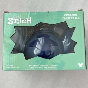 🆕 Disney Stitch Ceramic Trinket Jar with Lid Blue