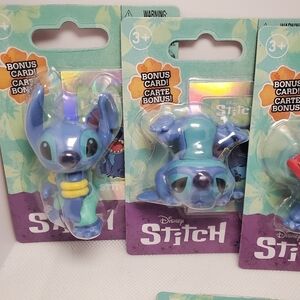 Disney Stitch Complete Set Of 5 Mini Figures W/ BONUS HOLOGRAPHIC CARDS