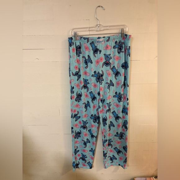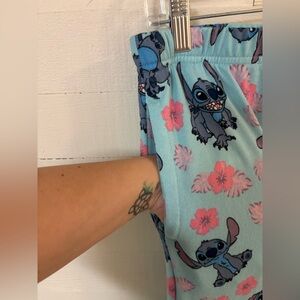 Disney Stitch Floral Pajama Bottoms Size M 8-10 Blue