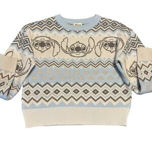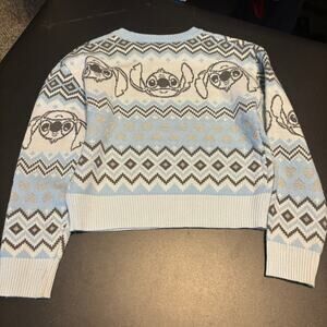 Disney Stitch Girls Metallic Lurex Holiday Sweater, Blue White Size 7/8 Medium M