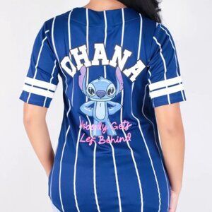 Disney Stitch Jersey Ohana Navy Aloha shirt NOBODY GETS LEFT BEHIND TOP