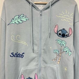 Disney Stitch Light Blue Full Zip Hoodie Stitch Character Cotton Blend Size M