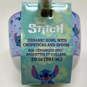 Disney Stitch & Lilo Ramen Ceramec Bowl Set with Chopsticks & Spoon 20 Oz. Bowl