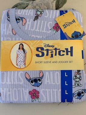 Disney Stitch Lilo Sleepwear Night Shirt Woman Medium 8-10 '21 Print Navy