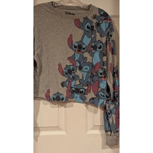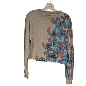 Disney Stitch Long Sleeve Crop Top Gray Graphic Print XS/XC