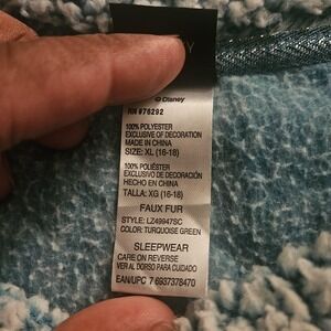 Visible tags/markings: Disney neck label; care/content tag indicating SLEEPWEAR