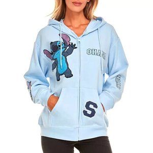 Disney Stitch Ohana Women's Full Zip Sweatshirt Hoodie Chenille Patches
