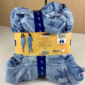 Brand new with tags Disney Stitch hooded one-piece pajama in size Large (12–14). Ultra-soft plush fleece with adorable allover Stitch print.