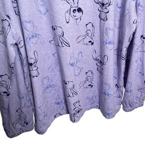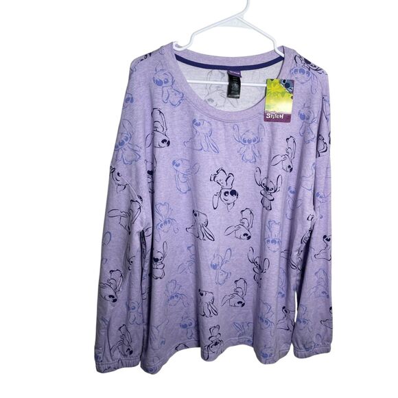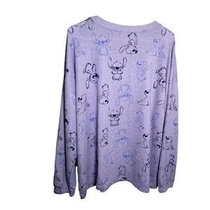 Disney Stitch Purple Fleece Long Sleeve Sleep Shirt Top Crew Printed NWT