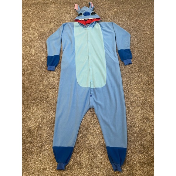 Disney Stitch Sleepwear One Piece Adult Costume Pajamas Plush Hood Size Medium