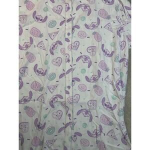 Disney Stitch Snacks Rayon Button Front Shirt Pizza Pineapple Donuts Large