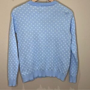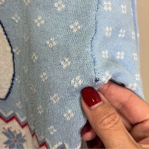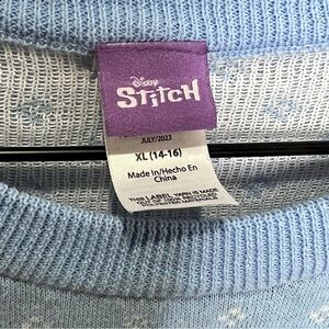 Disney Stitch Holiday Sweater. Cute blue sweater featuring Stitch with reindeer antlers. Perfect for fans. Size xl in kids but would also fit women’s small. Very cute and comfy. Small hole under arm. See in pix. Other than that in great shape.